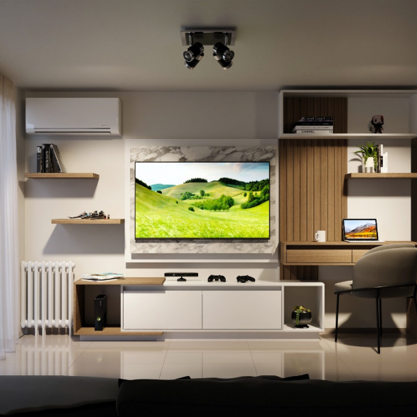Con 4 puertas que permiten guardar todo lo que necesites de manera discreta y manteniendo la estética del espacio.